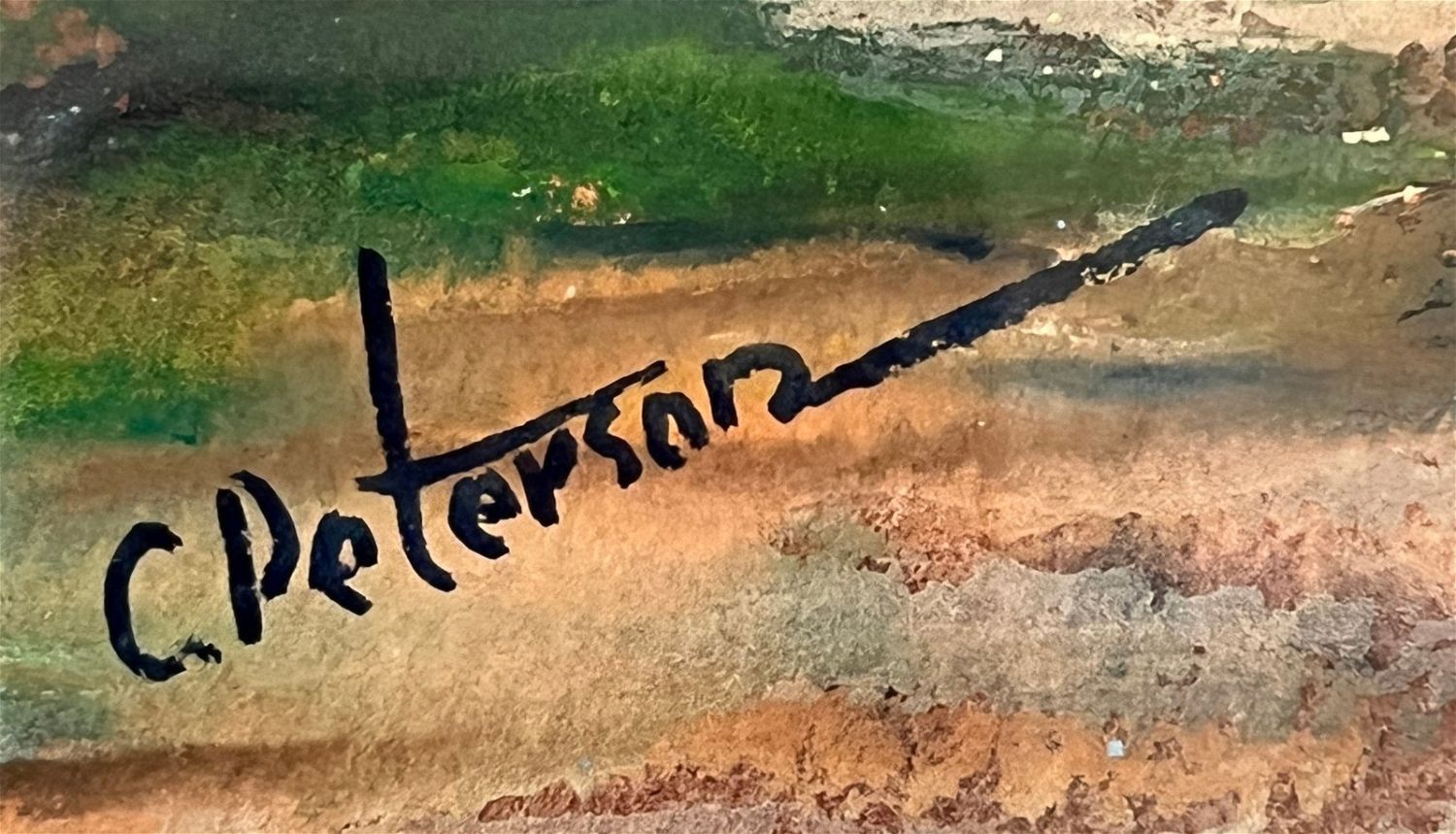 Peterson, Carl (1919-2009) untitled early landscape, watercolor, signed in lower right, good condition, image size: 19.5 x 14.25 inches. Carl Peterson (1919-2009) graduated from Lindsborg High School and studied art at Bethany College under the teaching of Swedish-American artist Birger Sandzen. He graduated in 1942 with a BFA. He received a MFA from the University of Colorado, Boulder. He also spent a summer studying at Columbia University, NY. He taught art in public schools in Osborne, KS; Hays, KS and Salina, KS. He taught art classes at Bethany College, Lindsborg, KS. In 1963 he became the co-director of the Birger Sandzen Memorial Gallery. Carl’s primary media was watercolor painting, although an occasional oil and casein painting will appear. While at Colorado University he studied lithography. A few of those examples still survive. Carl was a fairly prolific painter, especially after his retirement from the gallery in 1981.