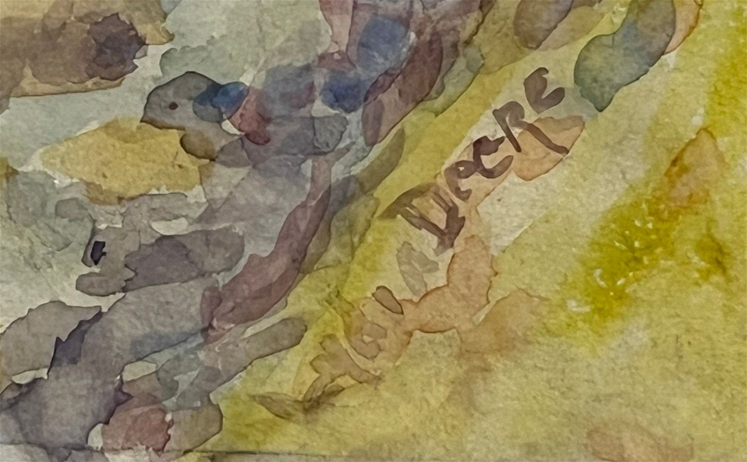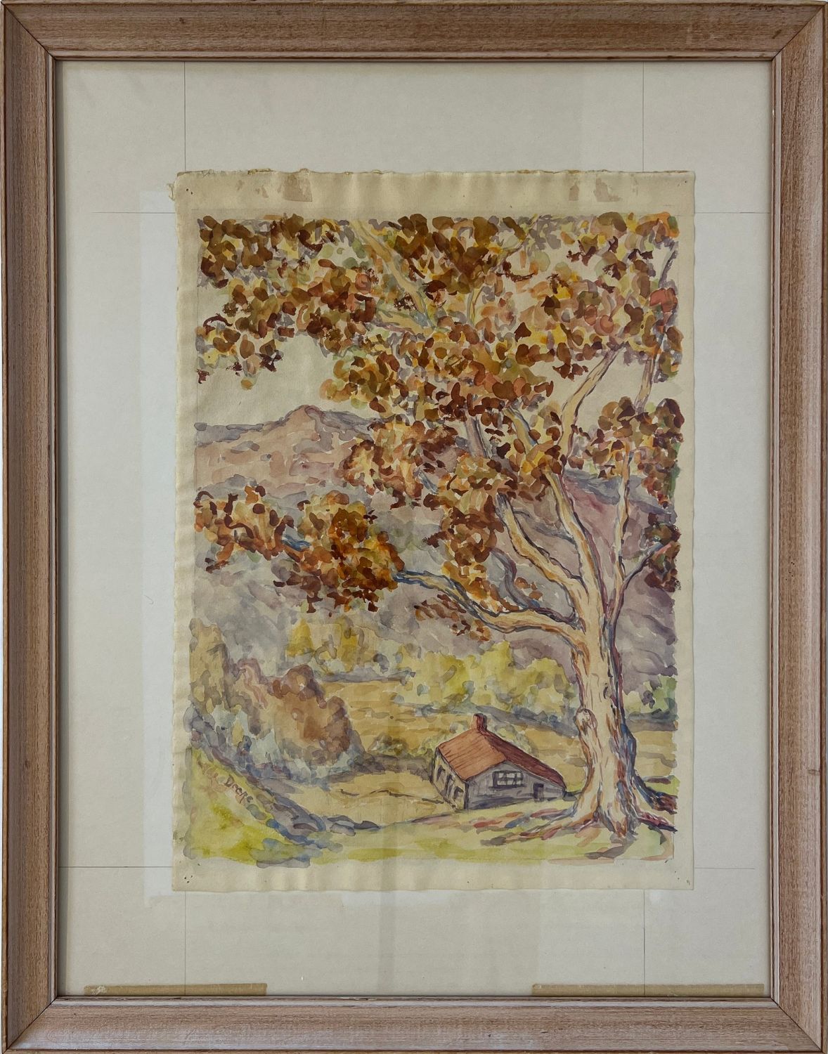 Deere, Lydia (1873-1923) untitled house with large oak, watercolor, pencil signed in lower left, good condition, appears to have some fading, image size: 13.75 x 10.25 inches. Born in Holmes City, Minnesota on August 22, 1873 and died in Lindsborg, Kansas, July, 1943, Lydia Deere was a teacher and a painter who specialized in landscapes and floral still lifes.Her family moved to McPherson, Kansas in 1880, and she earned a BA from McPherson College. She moved to Lindsborg and opened a millinery store and then was principal and teacher at the Lane Hart Women’s Dormitory in 1907.She married Professor Emil O. Deere of Lindsborg and earned a BFA from Bethany College in 1923. She was employed as an instructor in art at Bethany College, Lindsborg, 1924-31.