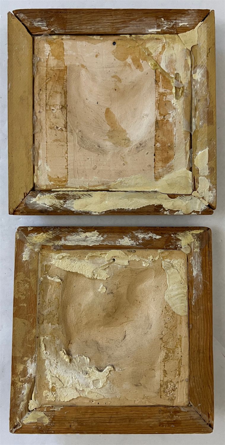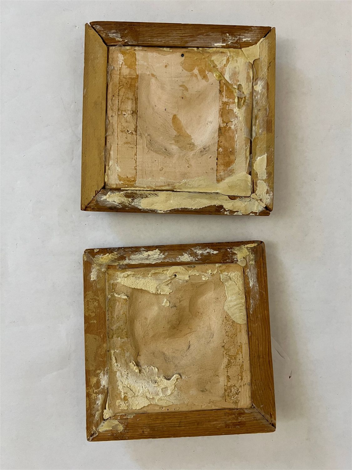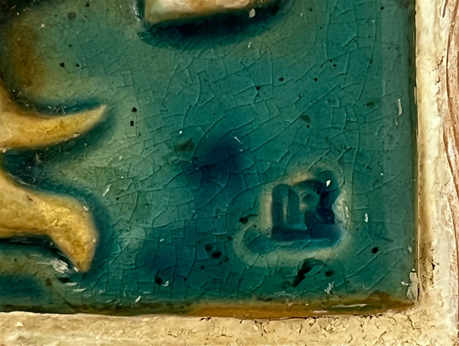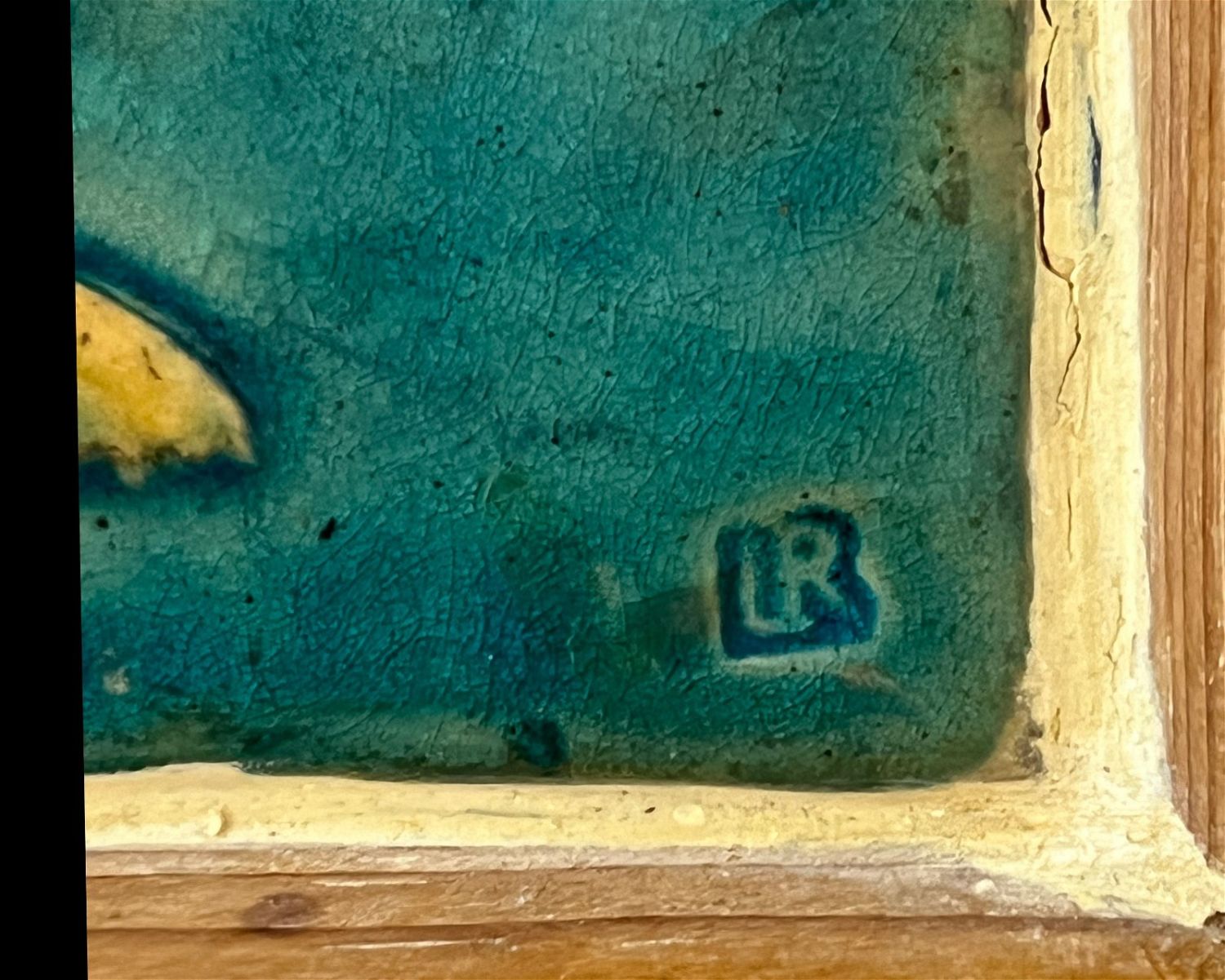 Raymer, Lester (1907-1991) pair of chicken tiles, ceramic, Raymer’s stamp "LR" on lower right on front of each, Raymer’s frames, good condition, tile size: 3.75 x3.75 inches each. one of Raymer’s annual Christmas cards, signed in lower right, good condition, image size: 5 x 4 inches. Lester Raymer, born in 1907, grew up on a farm just southwest of Alva, Oklahoma. Raymer worked with a variety of art forms beginning in his early grade school years and continuing throughout his artistic career. He received his bachelor’s degree in art from the Art Institute of Chicago. From 1936 to 1945 Raymer lived on his family farm again and continued to develop his artwork. Raymer met Ramona Weddle, his future wife, at the Art Institute.Raymer’s art was influenced by a number of factors. The circus came to Alva often during Raymer’s childhood. He worked for a poultry business where he did drawings and paintings in his spare time. The "Bible" was a source of imagery beginning in his childhood. Raymer’s painting professor at the Chicago Art Institute was Boris Anisfeld from Russia, and his art history professor was Helen Gardner, author of "Art Through the Ages", long-time used as a textbook of American art. Raymer talked often of the great influence his trips to Mexico had on his artwork and of his desire to remodel his studio in the style of a Mexican home.Raymer won major awards and international recognition with his religious art work and liturgical commissions. He taught one year at Bethany College in the art department and then made his living from the sale of his artwork. He utilized a variety of materials to produce a diverse body of artwork. Lamps, candleholders, furniture, and many of the sculptures in the studio were made for the studio use, not to sell. His paintings were most significant to him.Raymer was a studio artist in Lindsborg, Kansas until his death in 1991