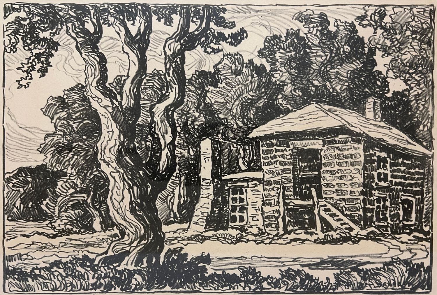 Sandzen, Birger (1871-1954) "The House in the Grove" 1930 lithograph
