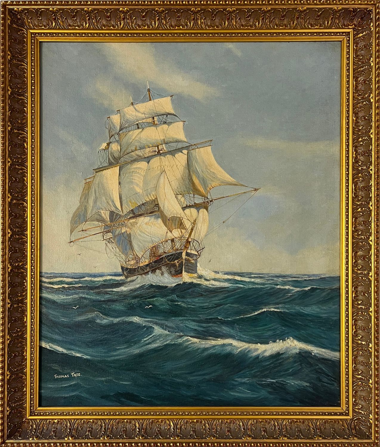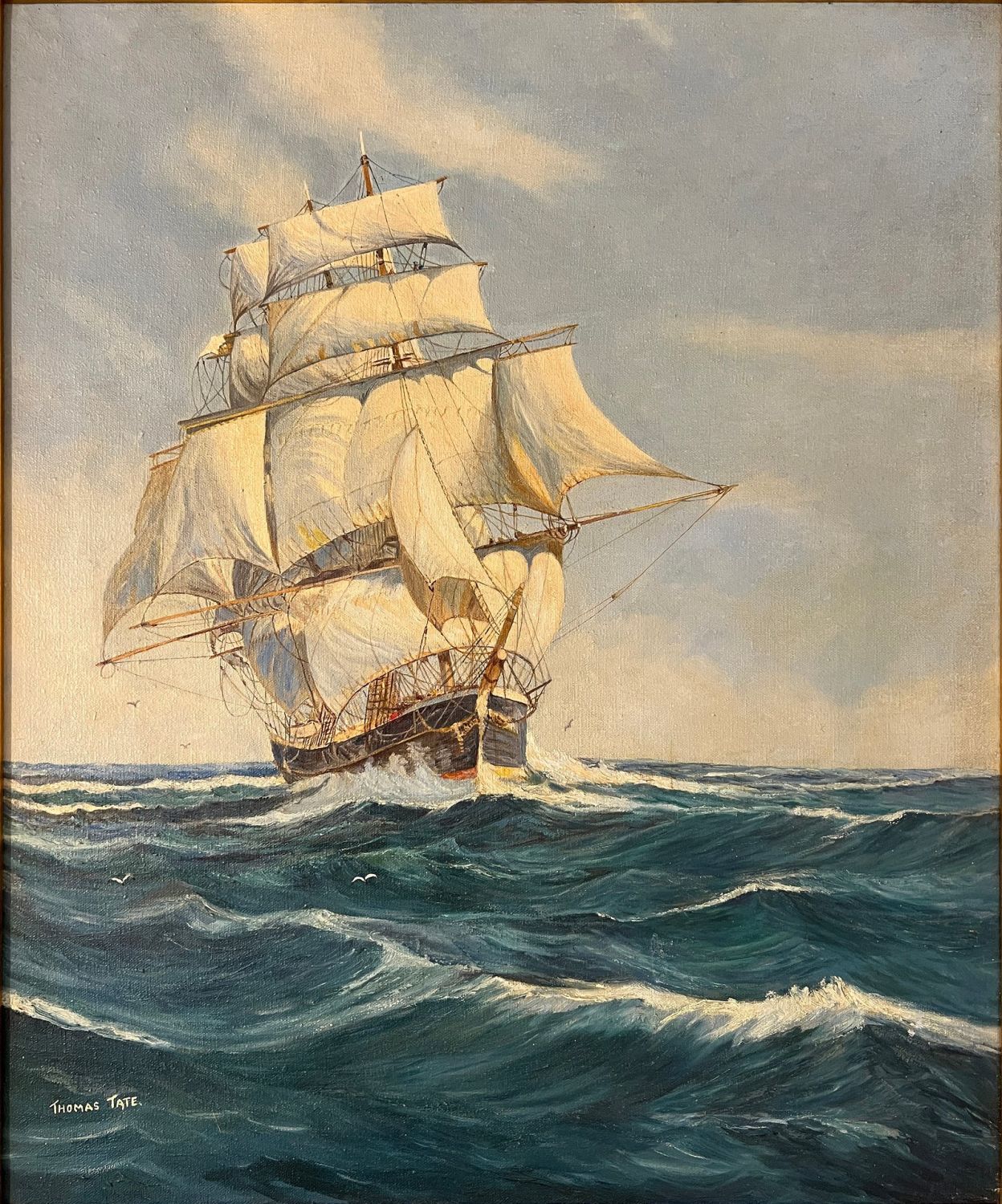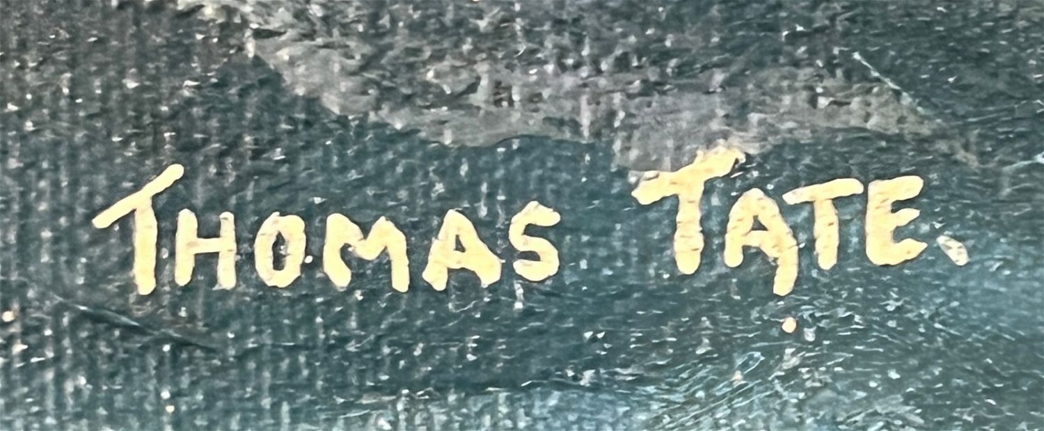 Tate, Thomas, untitled ship at sea, oil on canvas, signed in the lower left, good condition, canvas size: 24 x 20 inches.