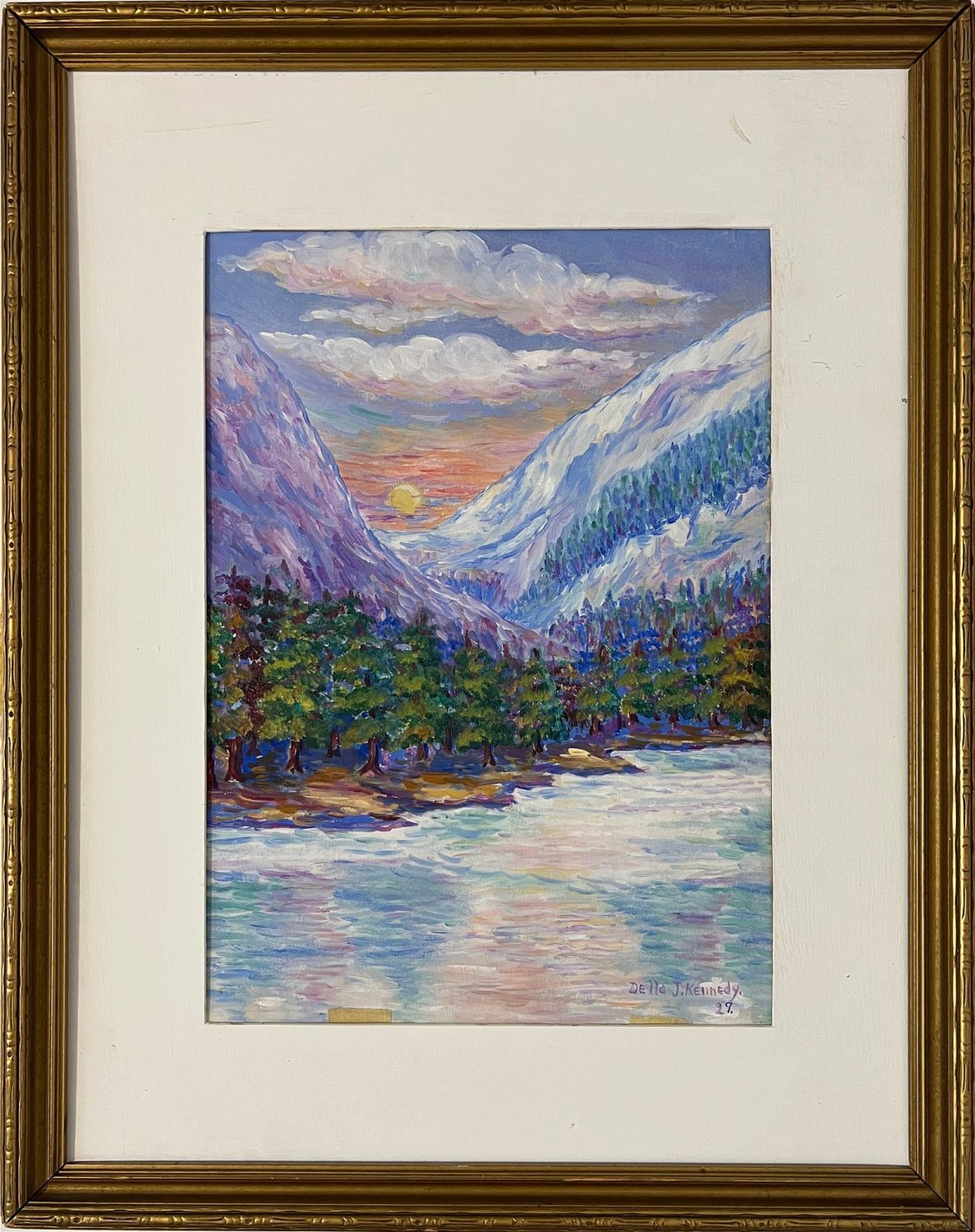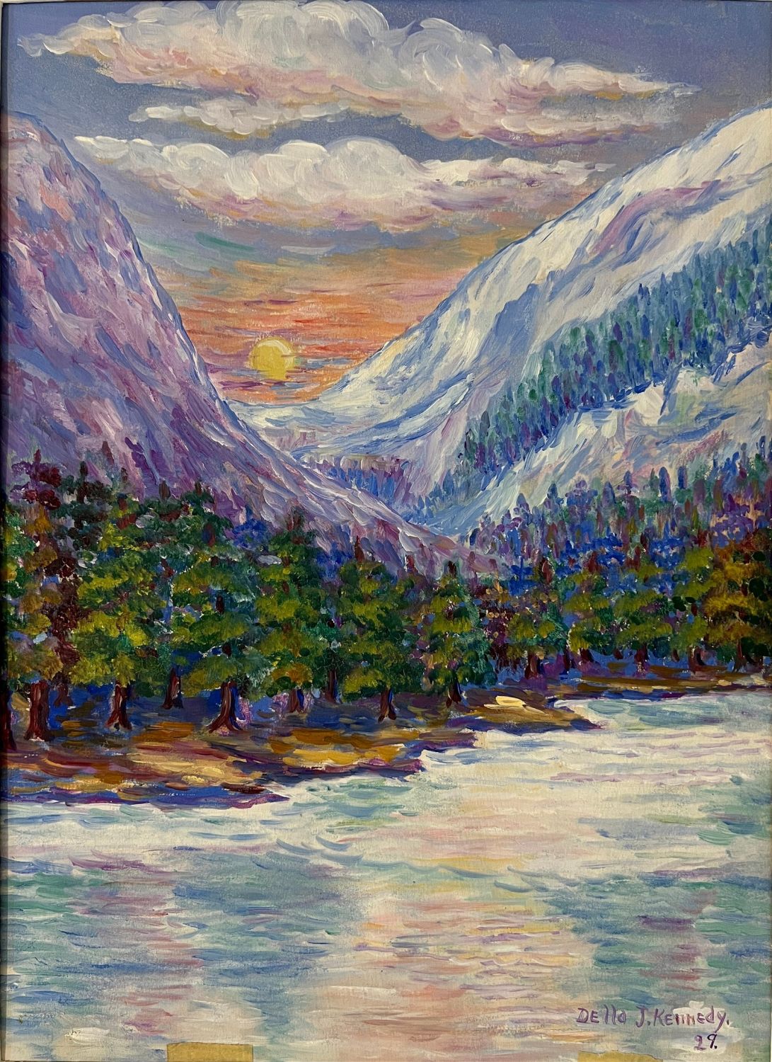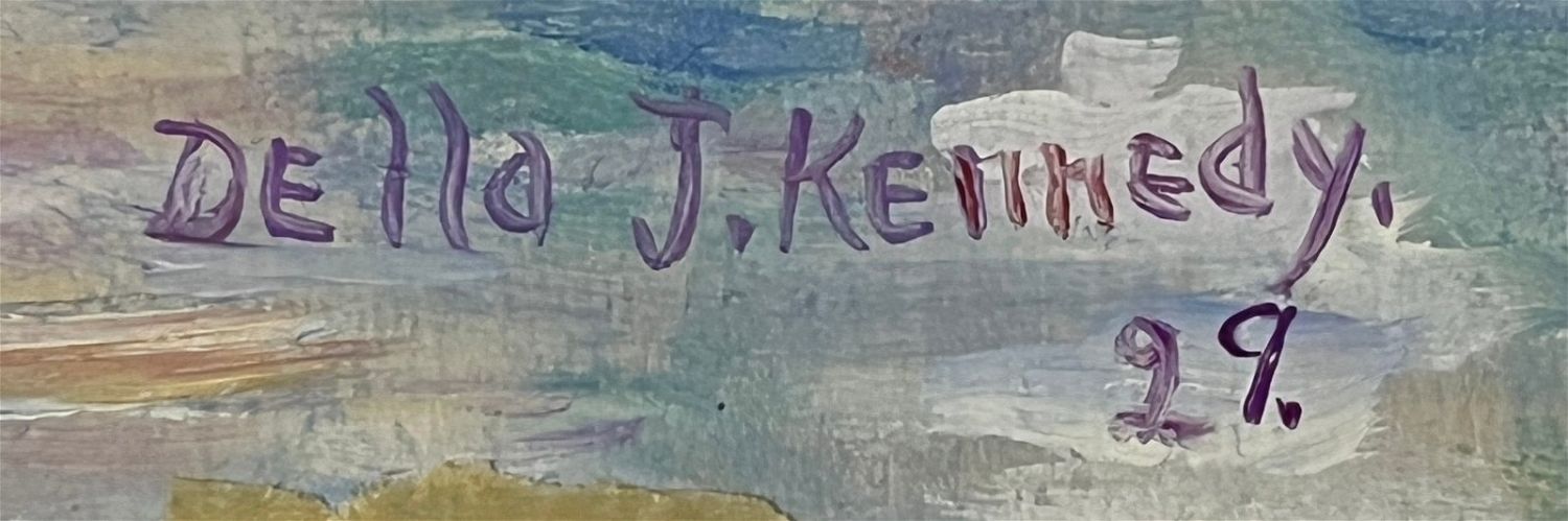 Kennedy, Della (1887-1967) untitled mountain river, oil on paper, signed in lower right, good condition, image size; 14.5 x 11 inches. Studied at Bethany College, Lindsborg, Kansas from 1933-38 as a pupil of Birger Sandz?n.Exhibitions: Kansas Master Artists, 1999.