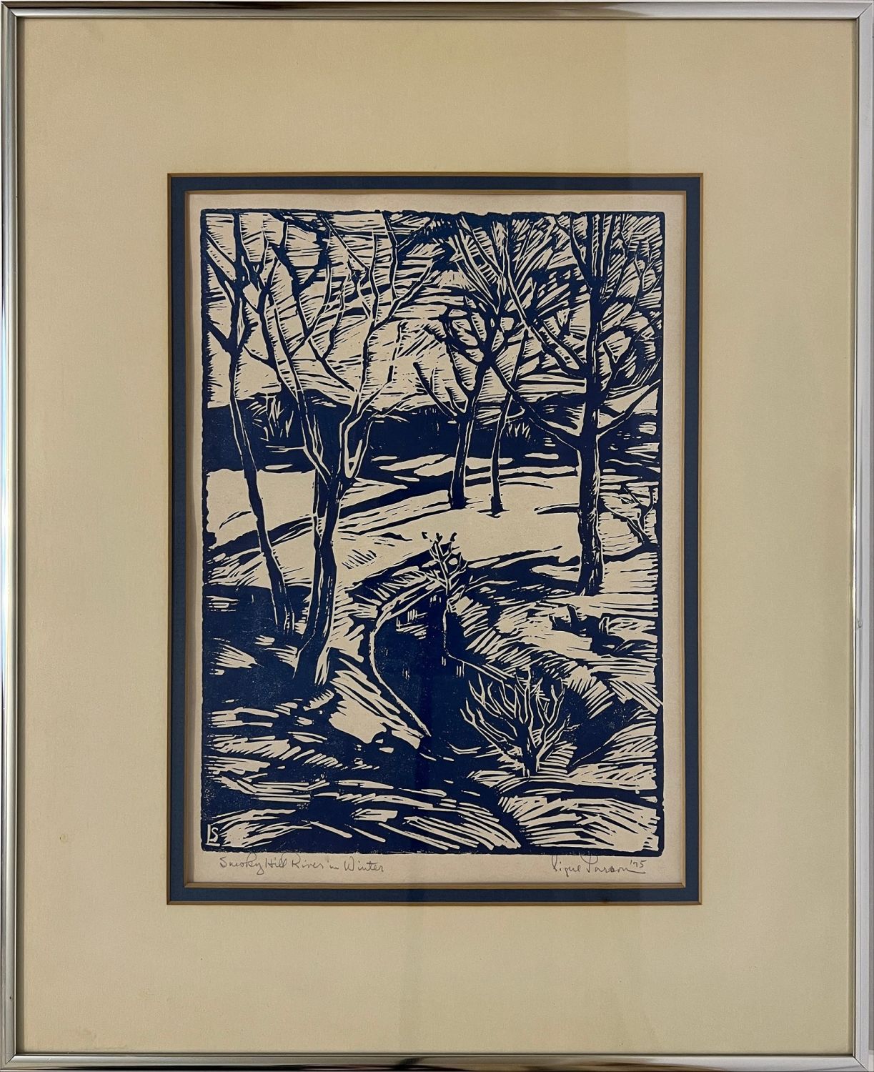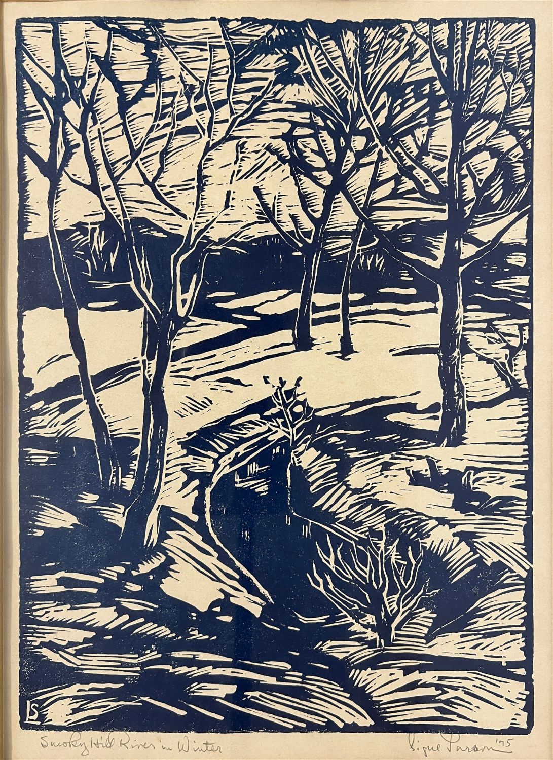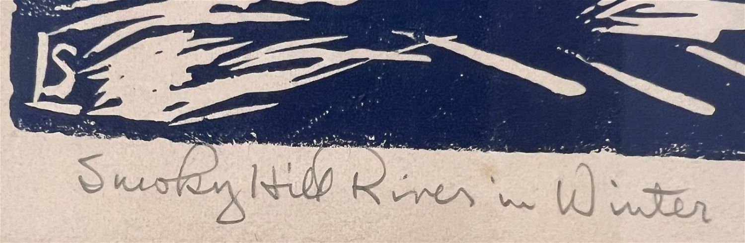Larson, Signe (1908-1993) "Smoky Hill River in Winter" 1975 block print